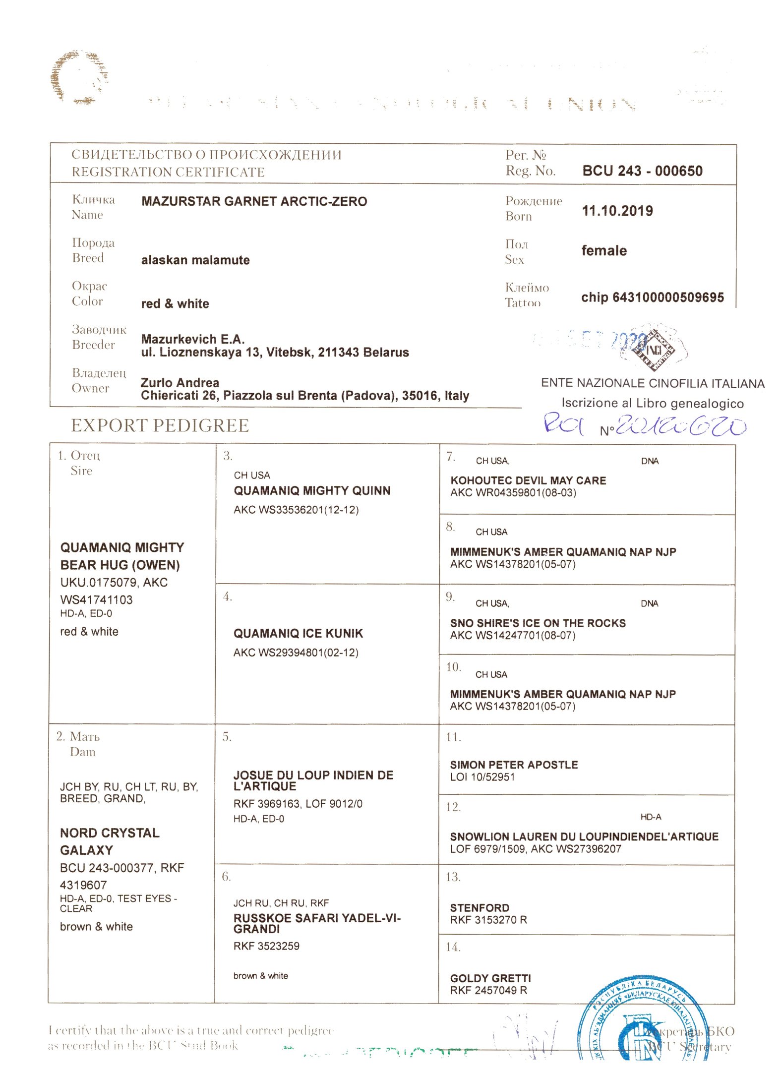 PEDIGREE: LO20120620